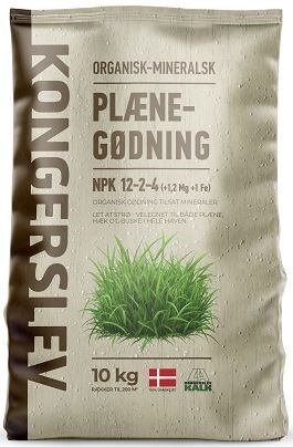 Kongerslev Plænegødning organisk-mineralsk NPK 12-2-4 +Mg + Fe er en organisk baseret gødning med tilsat magnesium og jern, der giver din plæne en tæt, stærk og dybgrøn farve.